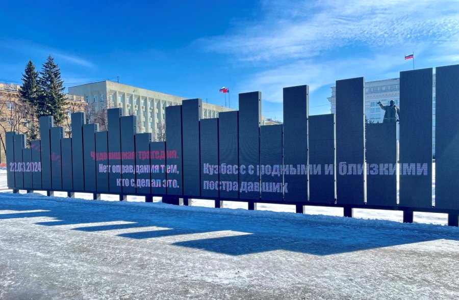 На уличных экранах и баннерах в городах КуZбасса появились слова соболезнования от жителей региона родным и близким погибших. В соцсетях кузбассовцы выражают слова поддержки пострадавшим. В городах региона появляются стихийные народные мемориалы, куда люди несут цветы.