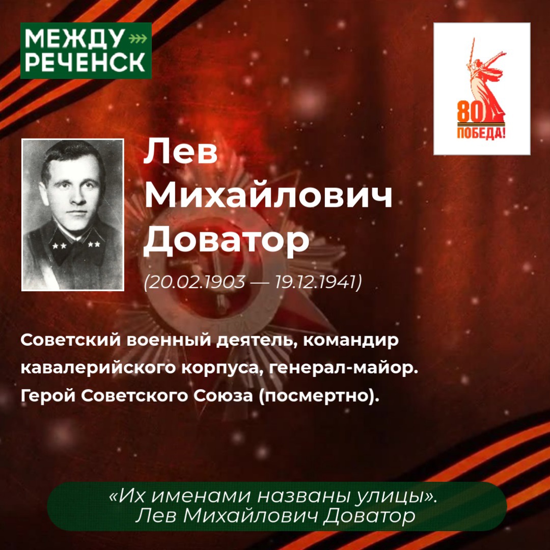 Одна из улиц названа в честь Героя Советского Союза генерала-майора Льва Михайловича Доватора.