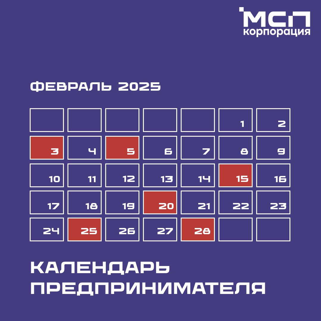 Календарь предпринимателя на февраль 2025 года