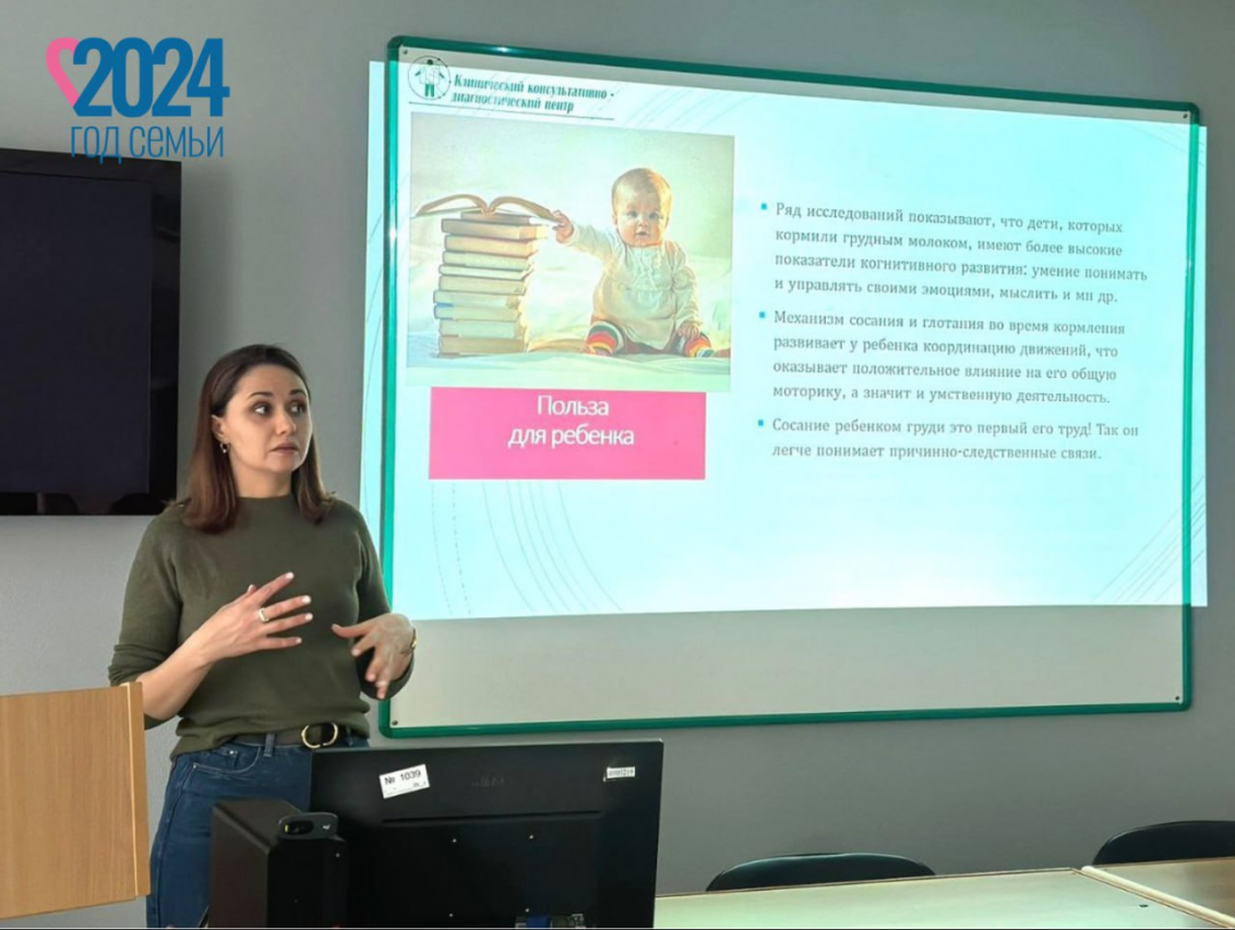 В женской консультации Клинического консультативно-диагностического центра им. И.А. Колпинского прошло занятие для будущих мам. Психолог Кузбасского центра общественного здоровья и медицинской профилактики Екатерина Ткаченко рассказала беременным женщинам о влиянии грудного вскармливания на эмоциональное состояние матери и ребенка.