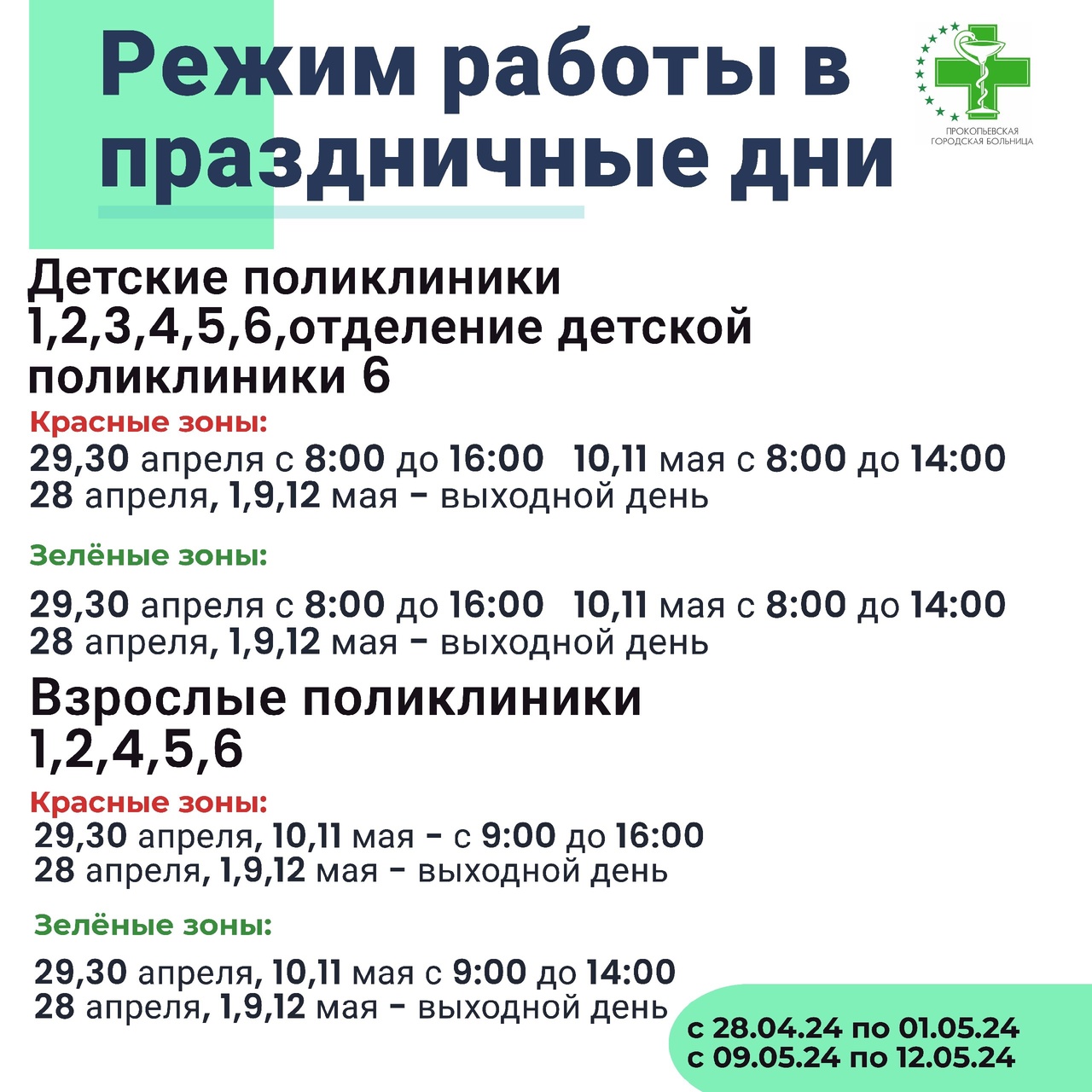 Планируете визит в больницу в праздничные дни? Не забудьте ознакомиться с графиком работы!