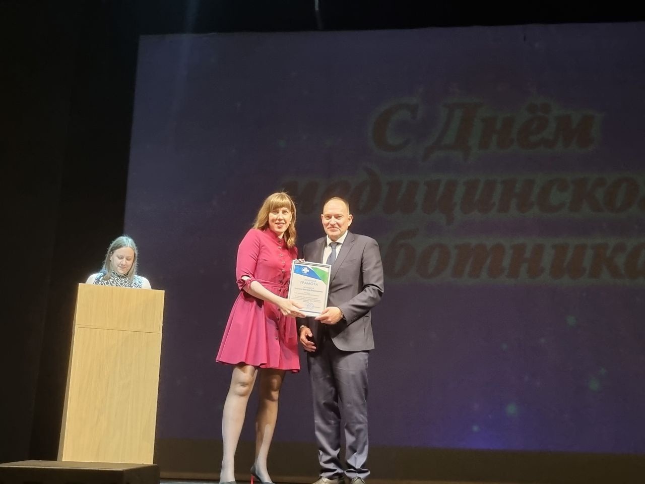 В Прокопьевском драматическом театре имени "Ленинского комсомола» прошло торжественное мероприятие посвященное профессиональному празднику "День медицинского работника" Почётной грамотой Губернатора Кемеровской област